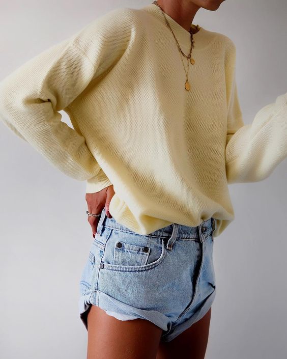 Es uno de mis favoritos. Es el outfit clásico, el cuál contiene jeans, shorts y un buzo liso o con una frase, ya sea conocida o simplemente el nombre de la marca